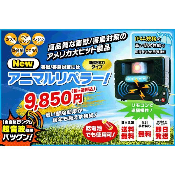害獣/害鳥の駆除なら、アメリカ大ヒット製品『Newアニマルリペラー』の新型強力モデル!