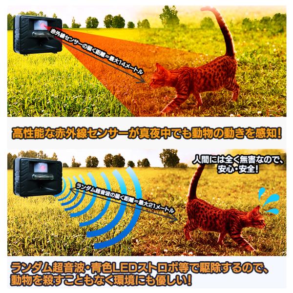 超音波などで害獣 害鳥駆除 乾電池でも使用可 防水 イタチ鳩カラス猪ハクビシン野良猫 鹿 鼠コウモリ Newアニマルリペラー(強力ハイグレードタイプ)RC132