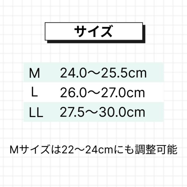 Mサイズ:約24.0〜25.5cmの靴に対応
