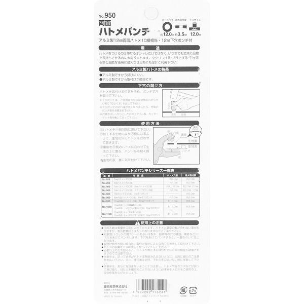 両面ハトメパンチ ハトメ穴径12.0mm No.950 【メール便送料無料】SK11 #950
