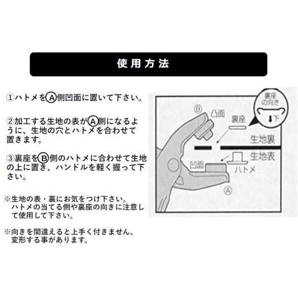 ・必要以上の力を加えると、ハトメが異形するだけでなく本体も壊れる危険性があります。