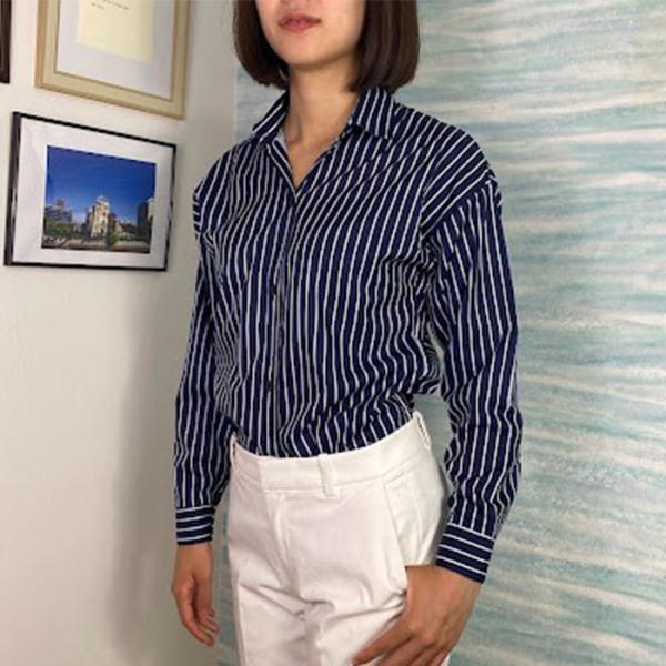 トップス シャツ ブラウス 長袖 レディース ストライプ柄 オーバーシャツ オーバーブラウス 秋 冬 春 ドレープ ゆったり 体型カバー