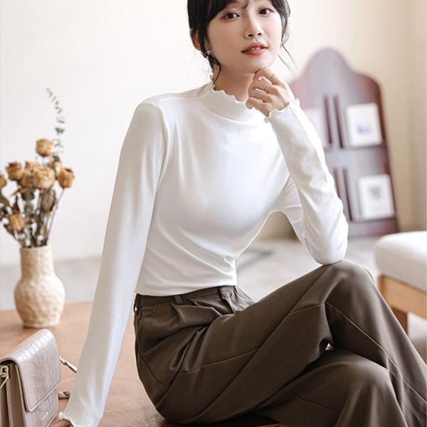 レディース トップス カットソー ハイネック フリル 長袖 インナー 秋 春 きれいめ インナー シンプル