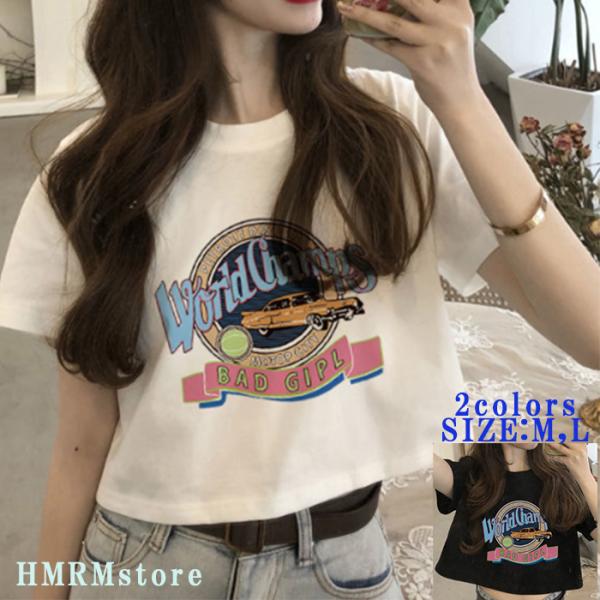 tシャツ Tシャツ レディース 半袖 カットソー ショート丈 クロップドt ロゴ 韓国ファッション Y2K かわいい へそ出し 短め ストレッチ
