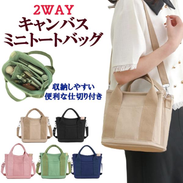 トートバッグ ショルダーバッグ レディース キャンバス 帆布 小さめ ミニ 手提げ 仕切り ファスナー付き ランチバッグ 通勤 通学 習い事 おしゃれ 軽量
