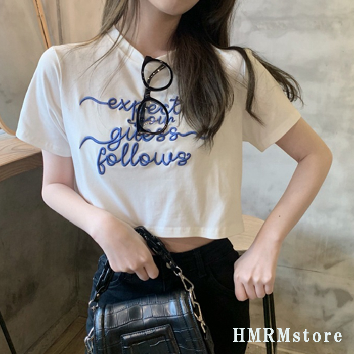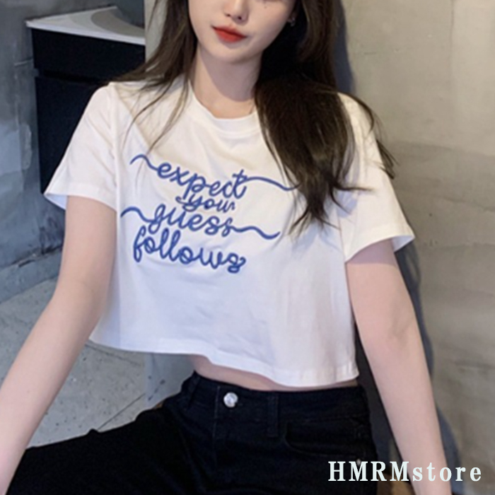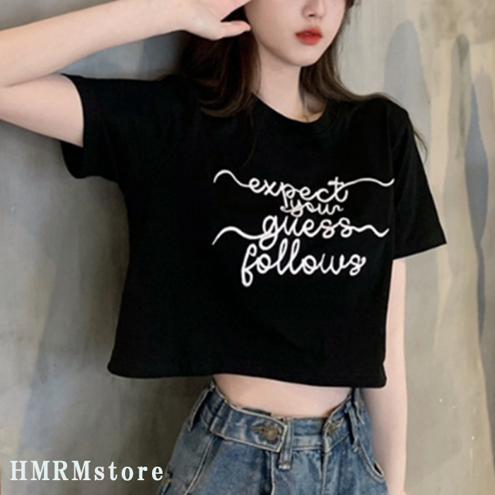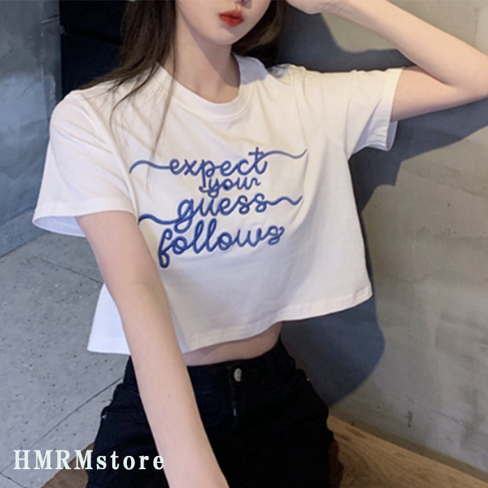 tシャツ Tシャツ レディース 半袖 カットソー ショート丈 クロップドt ロゴ 韓国ファッション Y2K かわいい へそ出し 短め ストレッチ