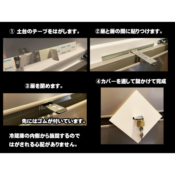 冷蔵庫に大人の力でも取れない鍵を簡単に取り付けできます。