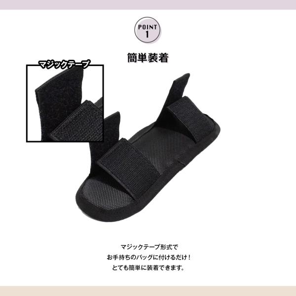 マジックテープ形式でお手持ちのバッグに付けるだけ!とても簡単に装着できます。
