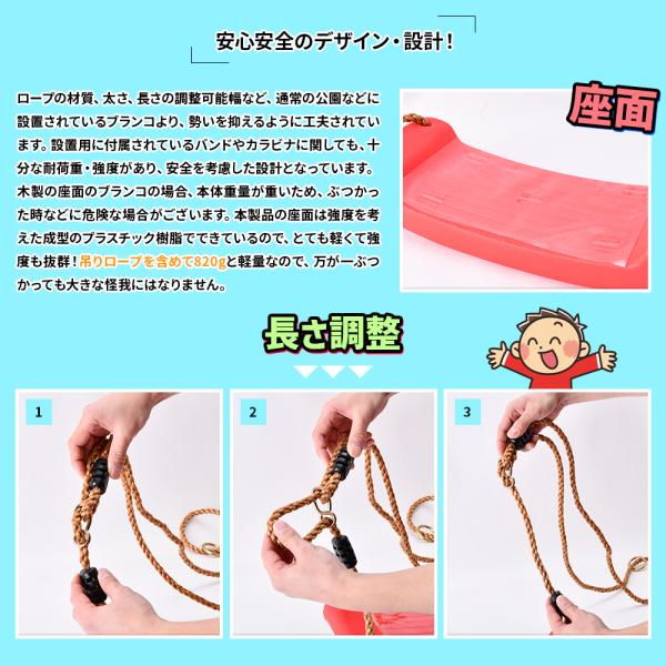 ※ロープに結び目を作ることで更に短くすることも可能です。