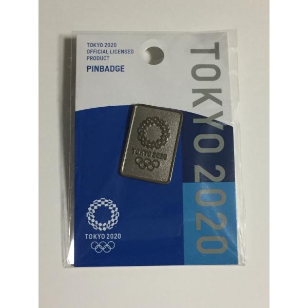 銀の金属色を生かしてデザインした長方形のピンバッジです。東京2020オリンピックエンブレムが凹凸で表現されています。