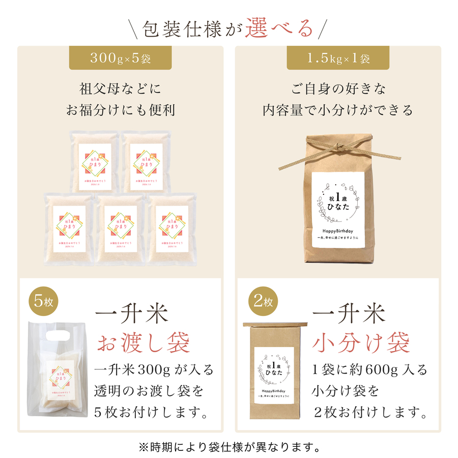 一升米 小分け 文字タイプ リュック 選び取り セット 1歳 誕生日 一升餅 の代わりに 一生米 コメ ギフト 令和7年 コシヒカリ
