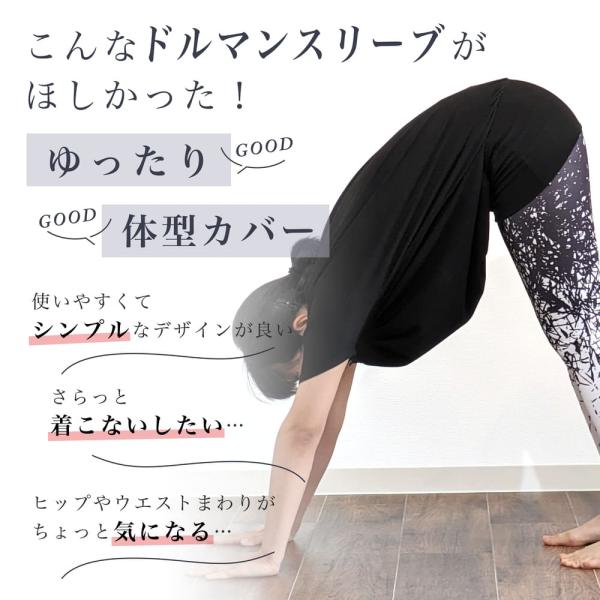 ヨガウェア トップス 体型カバー レディース おしゃれ ドルマンスリーブ ピラティス ゆったりシルエット 40代 50代 伸縮 HurrySlowly ハリスロ
