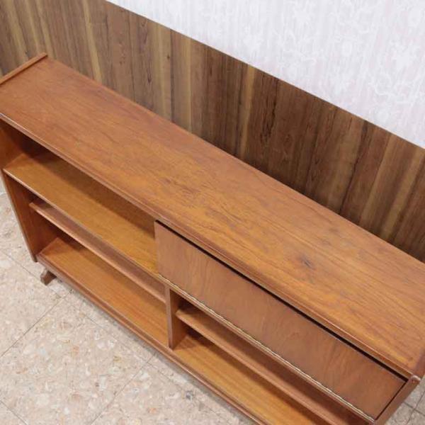本棚としてはもちろん、リビングボードとしてテレビやオーディオ機器を置いたり、ダイニングで食器棚やコレクションボードとしても活躍します。コンパクトながらも収納とディスプレイを両立できる、現代の住環境に最適なヴィンテージ家具です。