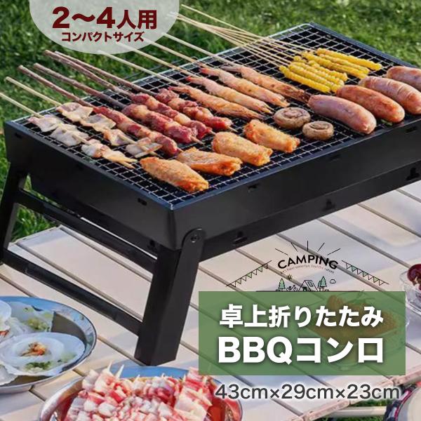 卓上コンロ BBQ バーベキューコンロ 43×29×23cm 折りたたみ BBQ グリル バーベキューグリル 焚火台 軽量 コンパクト 持ち運び アウトドア