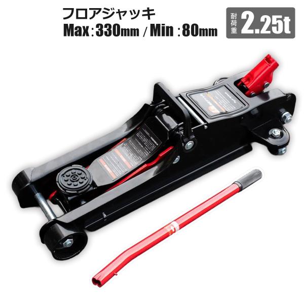 【SALE対象品】フロアジャッキ 2.25T スチール 軽量 フロアジャッキ 黒 最高位330mm 最低位80mm ガレージジャッキ 油圧 低床 保護パッド付き
