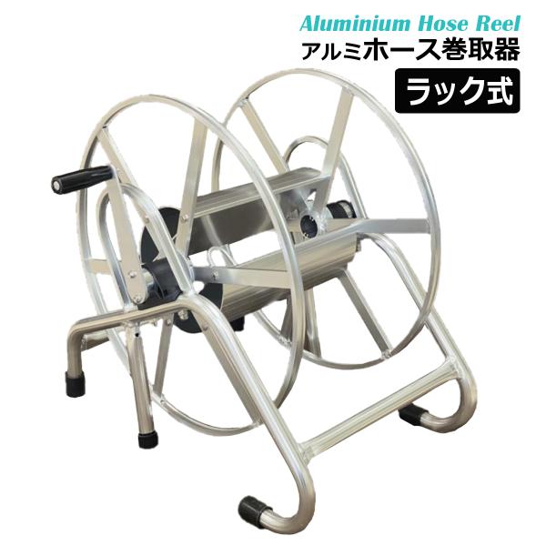 アルミホース巻取器 ラック式 ホースリール 軽量 8.5mmのホース150m巻取トラックあおりに引掛けて使用可能 シンセイメーカー直送