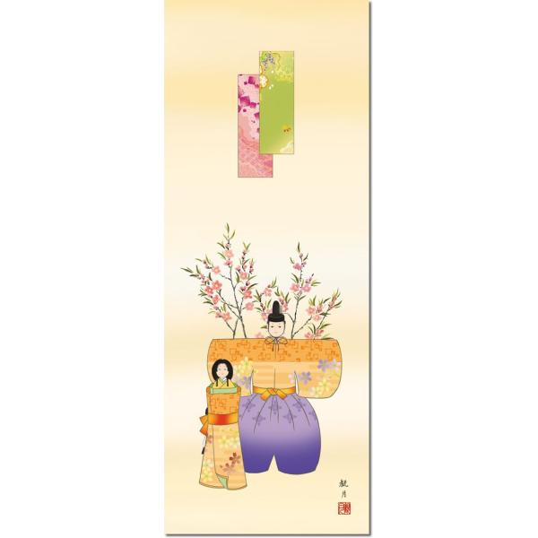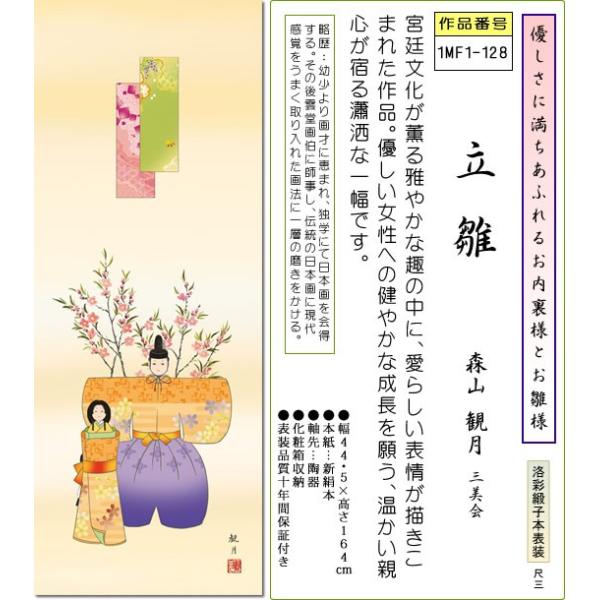 桃の節句画掛軸-立雛/森山観月(尺三)床の間 和室 女の子 祭り お祝い お雛様 初節句 モダン オシャレ 吊るし 子供 孫幅44.5×高さ164cm