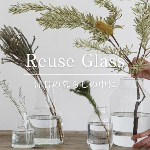 ■再生ガラスで作られたリューズガラスシリーズは素朴な風合いが特徴です。また、裾広がりのフォルムは安定感があるうえに存在感もあり、お花を一輪生けるだけで空間が絵になります。リューズガラス製品は、熟練の職人たちによるハンドメイドによってひとつひとつ作られています。