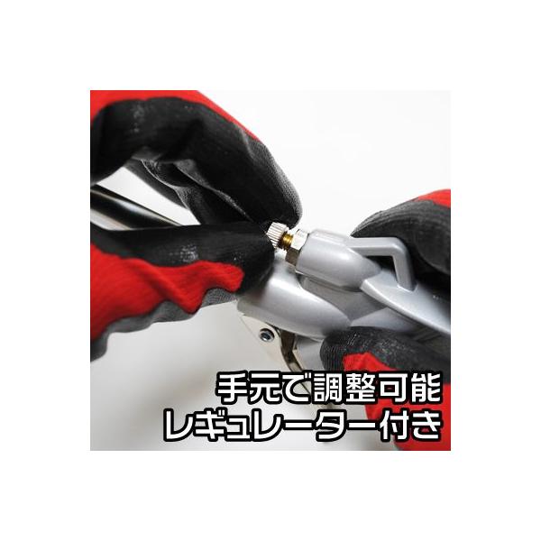 噴射する液体の量を、手元で調節できるレギュレーター付きで、洗浄もブローも簡単に行う事ができます。