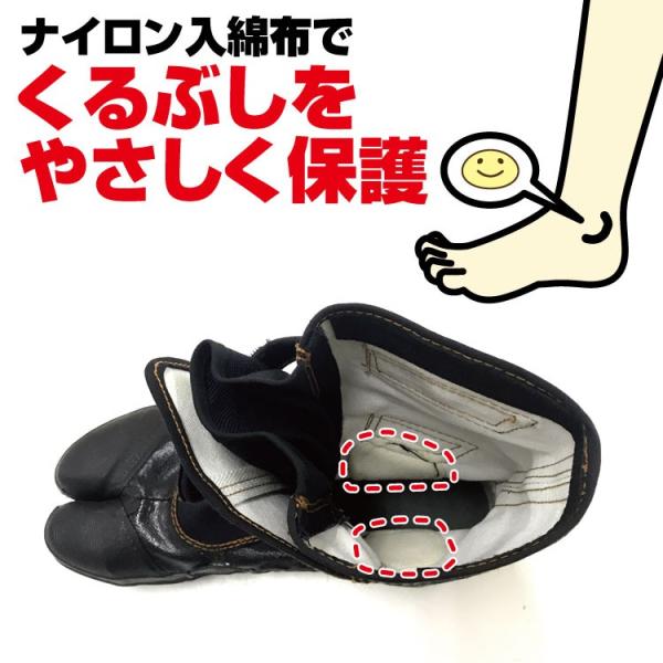 ナイロン入綿布と足下綿布補強加工で丈夫