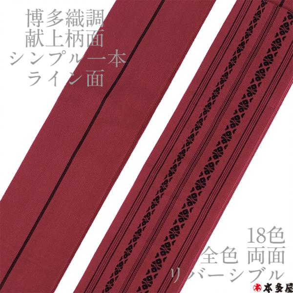 角帯 男帯 メンズ 紳士 男性 綿角帯 浴衣 着物 日本製 綿 博多織 献上柄 両面 リバーシブル 赤 黒 白 緑 藍 茶 灰 紺 剣道 弓道 武道 成人式 袴下帯 結婚 夏 冬