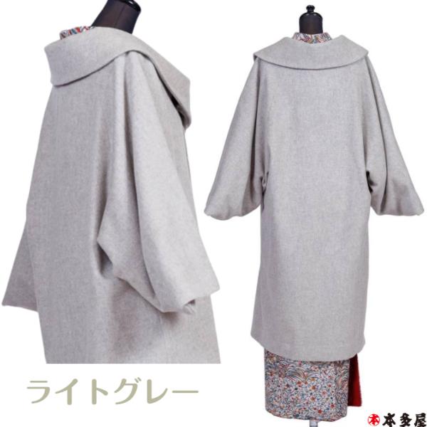 和装コート 着物コート 日本製 カシミヤ カシミア ロング 防寒 あたたかい 軽い ライトグレー 灰色 ブラック 黒色 ロール襟 ロール衿 フリー 高級 シャルム加工