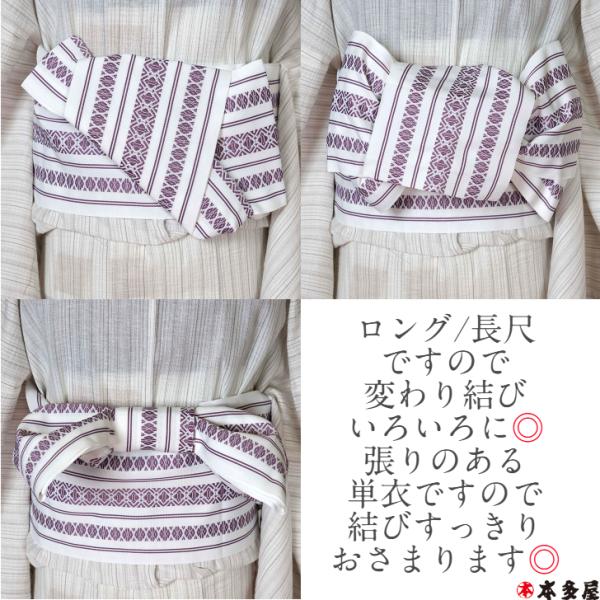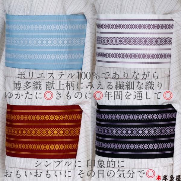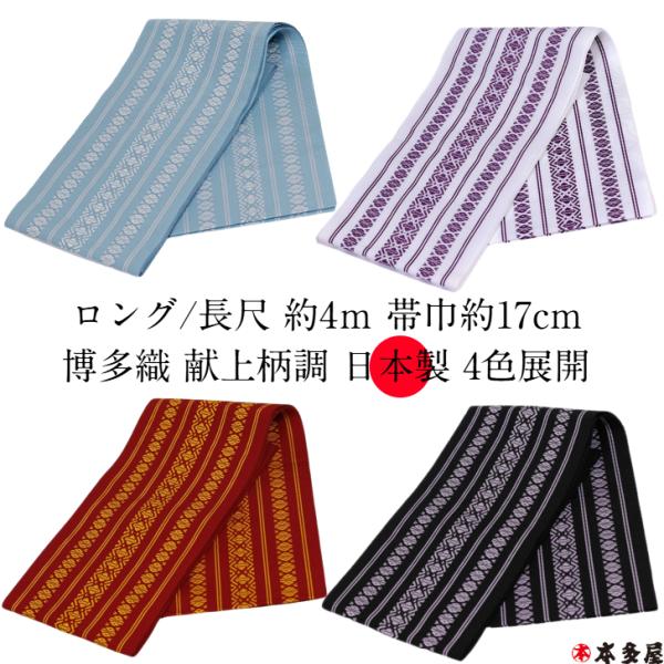 半巾帯 半幅帯 袴下帯 ロング 長尺 博多織 献上柄 調 国産 日本製 素材 洗える ポリエステル 四季帯 オールシーズン 浴衣 着物 黒 ブラック 白 ホワイト