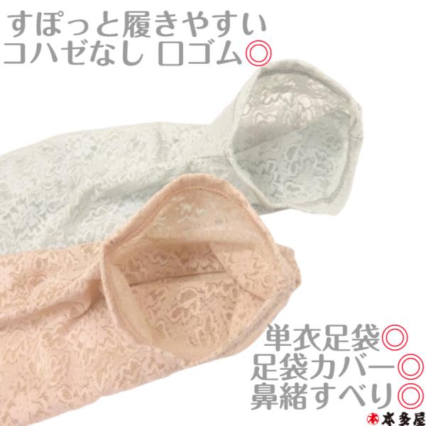 足袋 たび レース レース足袋 単衣 足袋カバー 浴衣 ゆかた 着物 きもの 春 夏 秋 冬 オールシーズン グレー ブルー ホワイト ベージュ ピンク ブラック 灰 青 白 生成り 桃 黒 すべりのいい ガード 汚れ 雨 鼻緒すれ 予防 防止 伸縮 楽 口ゴム