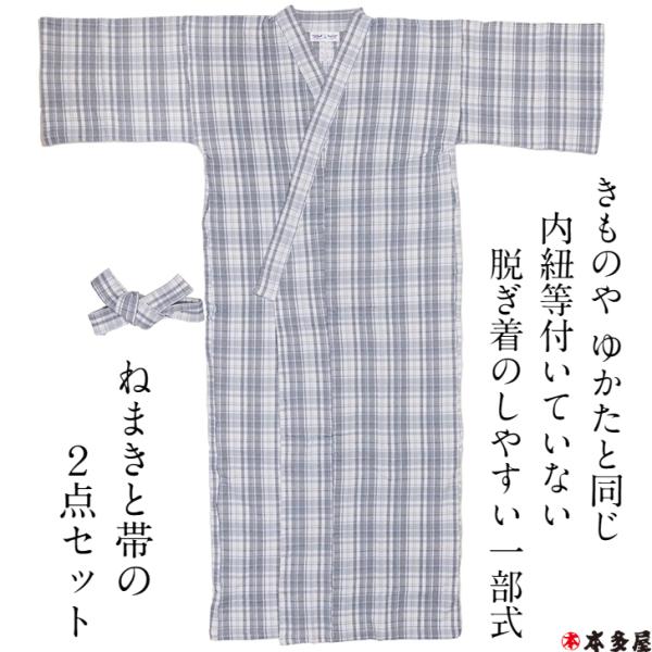 ねまき 寝巻き 寝間着 男性用 メンズ 紳士 秋 冬用 着物 浴衣 きもの ゆかた パジャマ 丹前下 和装 わそう 温かい 暖かい あたたかい ニットキルト 国産 日本製 一部式 帯付き おしゃれ かっこいい プレゼント ギフト 敬老の日 ブルー 青 グレー 灰