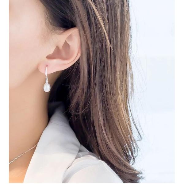 Akinomi レディース ピアス 天然 淡水 パール シルバー925 揺れる 金属アレルギー対応 ジルコニア 誕生日 結婚 母の日 プレゼント おしゃれ 大人可愛い 真珠