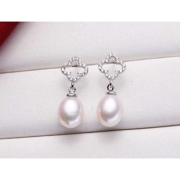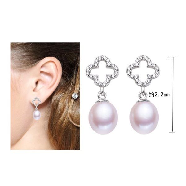 Akinomi クローバー 四葉 金属アレルギー 対応 レディース ピアス 天然 淡水 真珠 パール シルバー925 一粒 おしゃれ 揺れる ジルコニア 誕生日 結婚 母の日