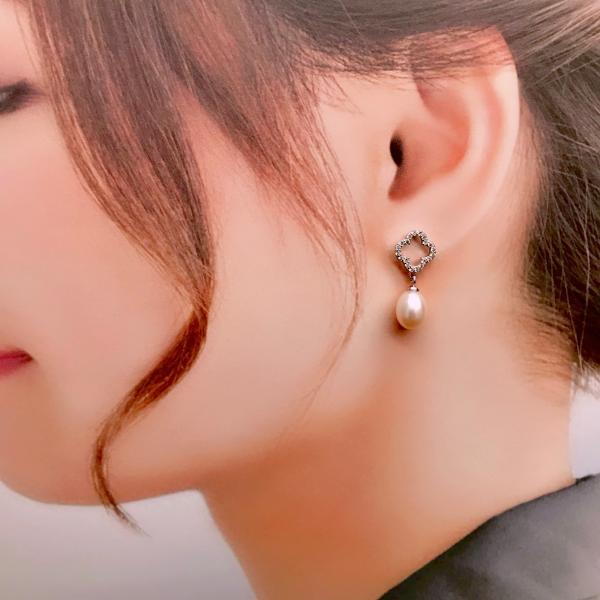 控えめながらも印象に残るドロップシェイプは、顔まわりをすっきりと見せ、日常使いはもちろん、結婚式や記念日など