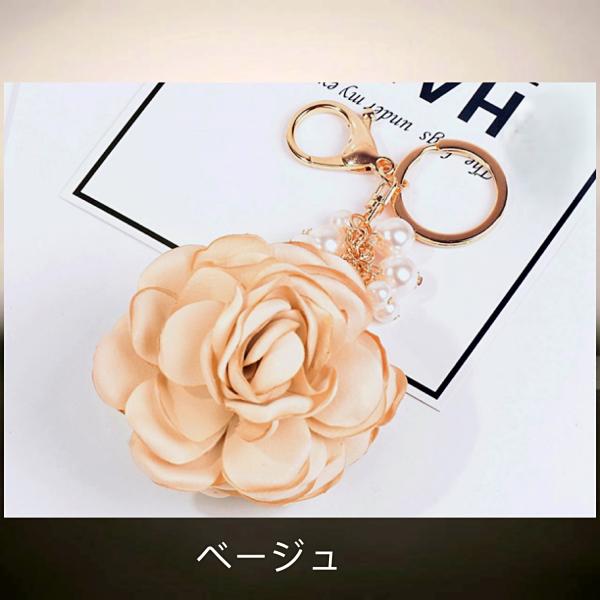 レディース バッグチャーム 夏 大輪の花 椿 ビーズ パール 布 キレイ 花 キーホルダー 可愛い おしゃれ 大きめ 誕生日 結婚 母の日 ギフト プレゼント