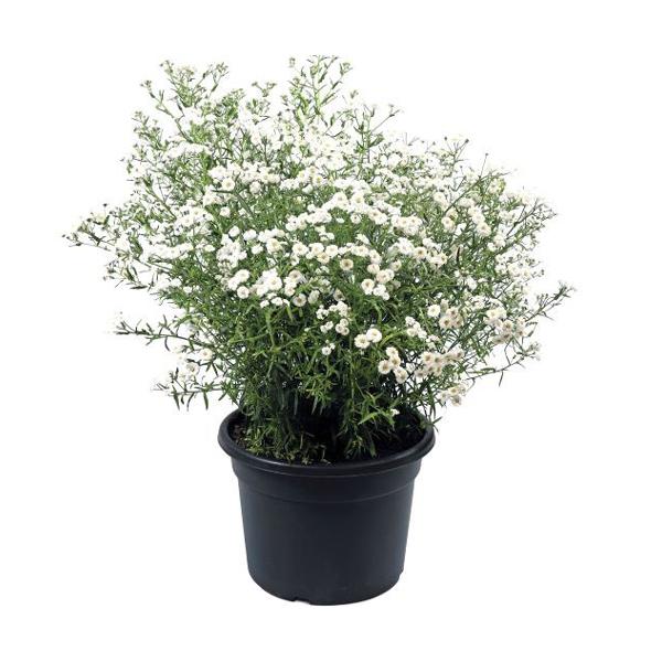 かすみ草のような八重咲きの白花を多数咲かせます。