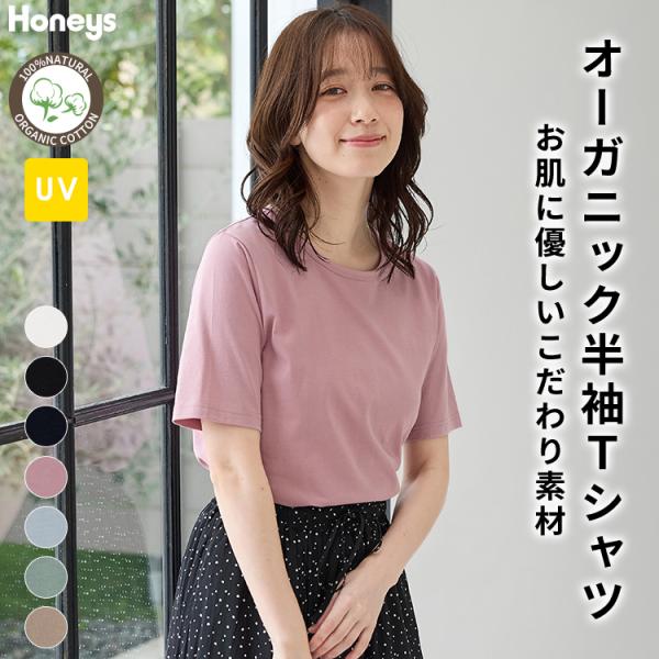 トップス Tシャツ 半袖Tシャツ カットソー 半袖 オーガニックコットン UVカット 綿100% レディース Honeys ハニーズ オーガニック半袖Tシャツ