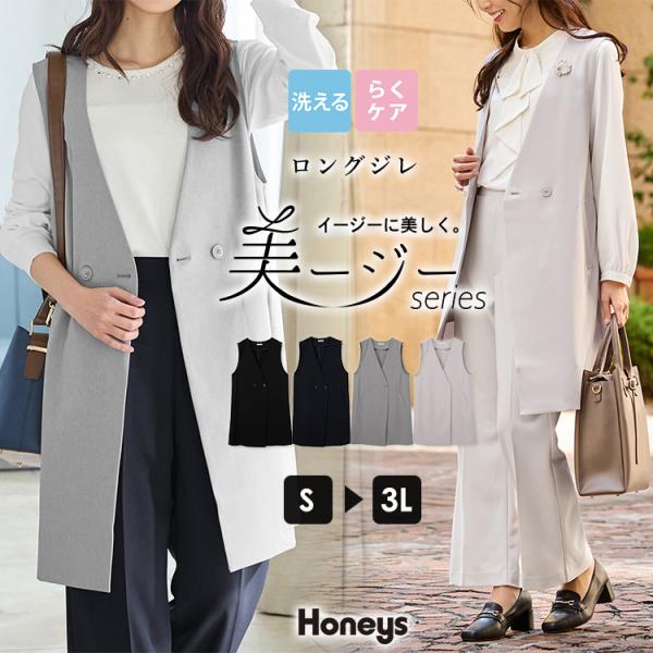 アウター ジレ セットアップ ウォッシャブル 大きいサイズ オフィス きれいめ セレモニー イージーケア レディース Honeys ハニーズ テーラードジレ