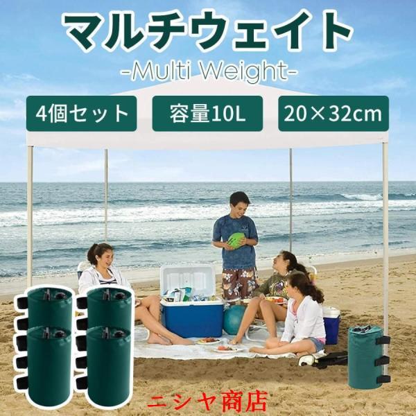 テント重りウェイトバッグテントおもりマルチウェイト10リットル4個セットタープテント用マルチウェイトバンドテープ付き注水タイプ屋外重し袋