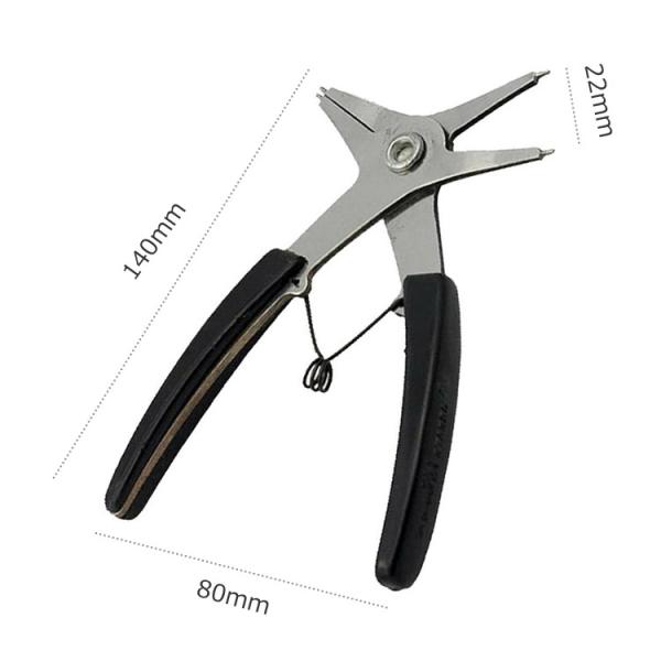 スナップリング穴用、軸用のどちらにも対応したスナップリングプライヤー。