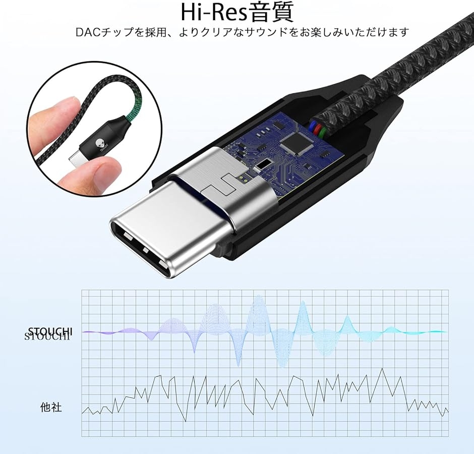 USB-C to 3.5mm イヤホン変換アダプタ DAC搭載・通話/リモコン操作対応 Type-C (ブラック, 1個セット)