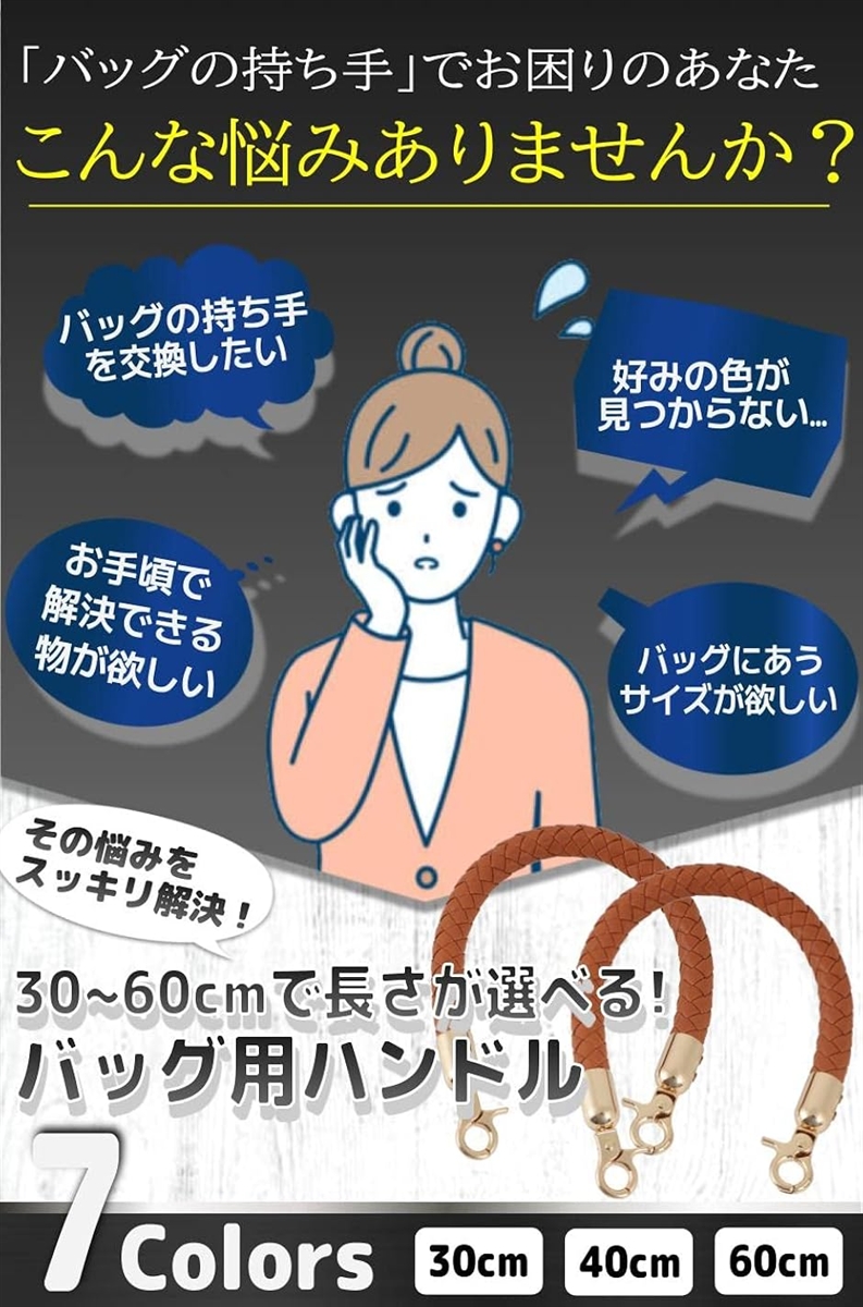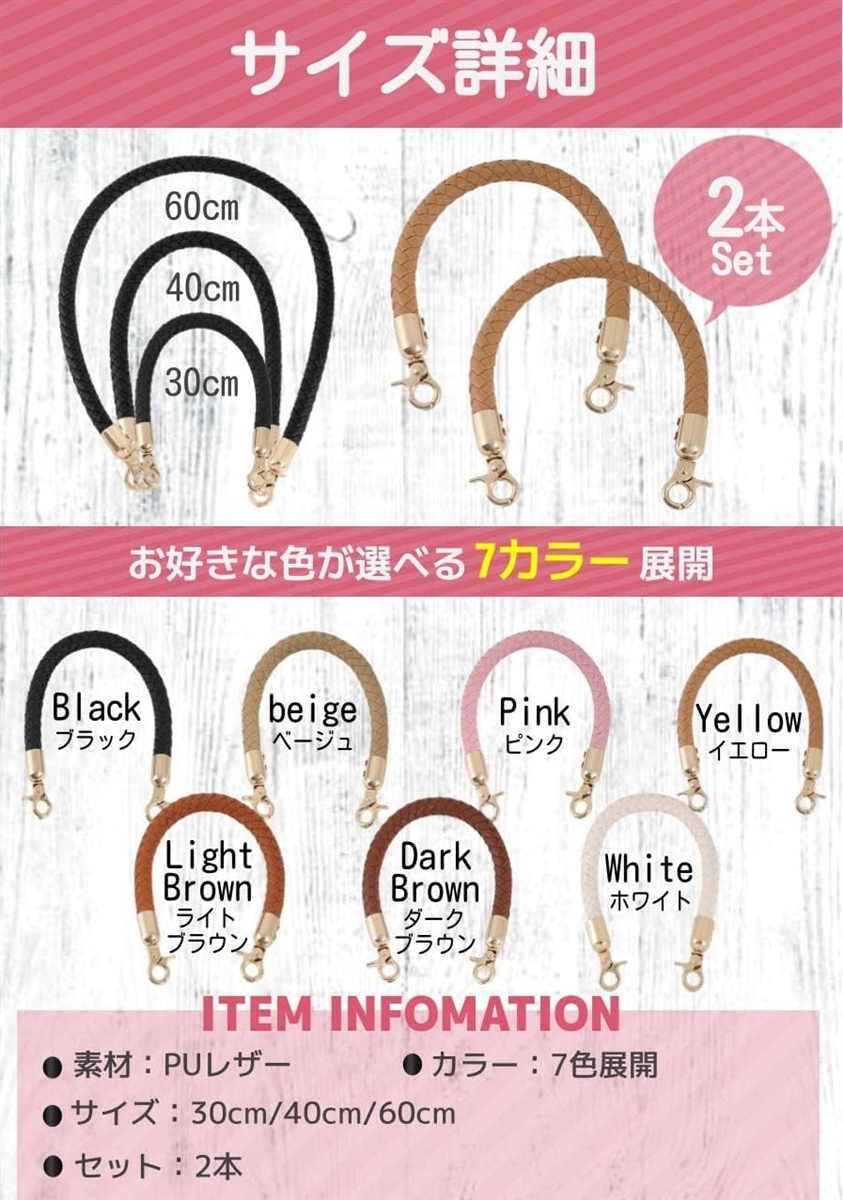 「商品詳細」素材:PUレザー・7カラー サイズ:30cm/40cm/60cm 太さ約2cm セット:2本