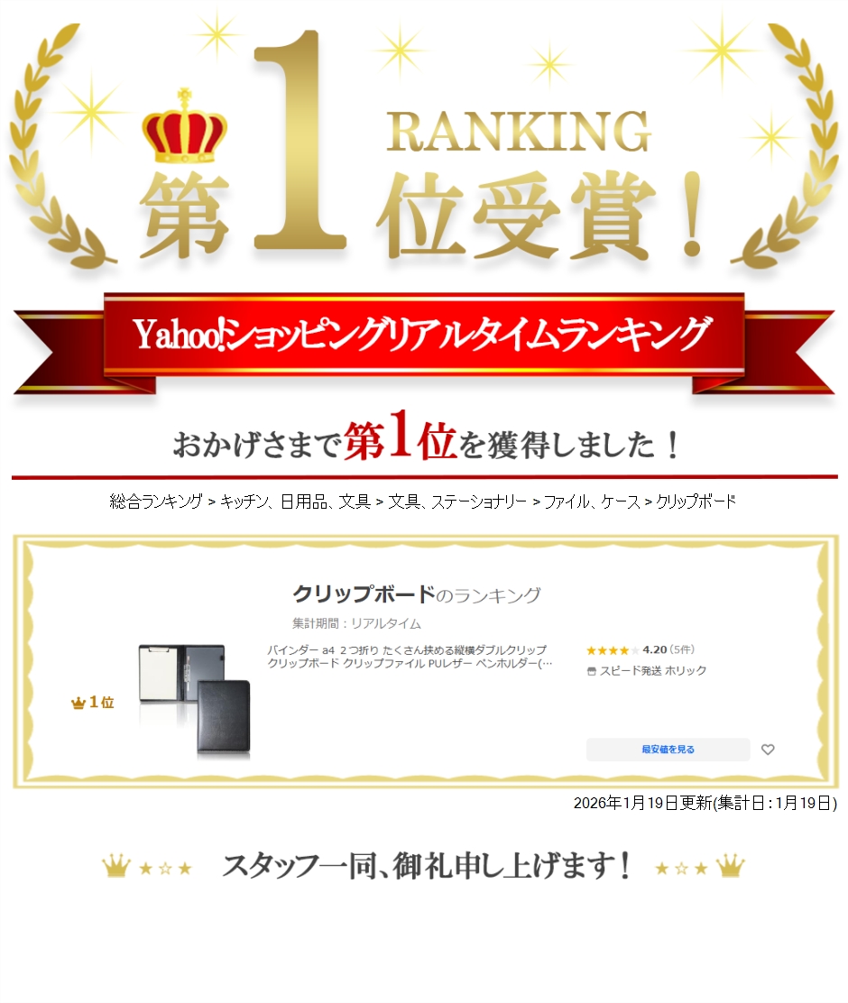 【Yahoo!ランキング1位入賞】バインダー a4 2つ折り たくさん挟める縦横ダブルクリップ クリップボード PUレザー (ブラック)