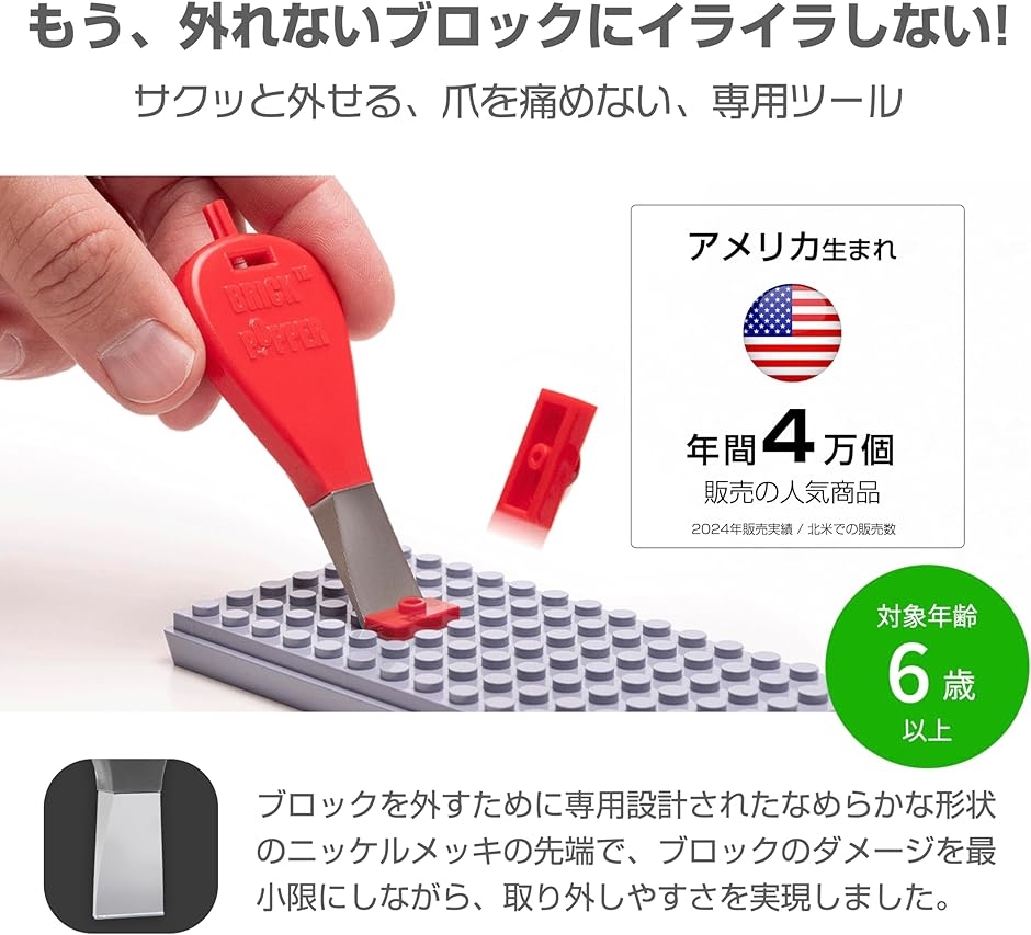 「ラクラク取り外し」爪や指を傷めず、レゴなどのブロックを簡単&素早く外せる専用ツールです