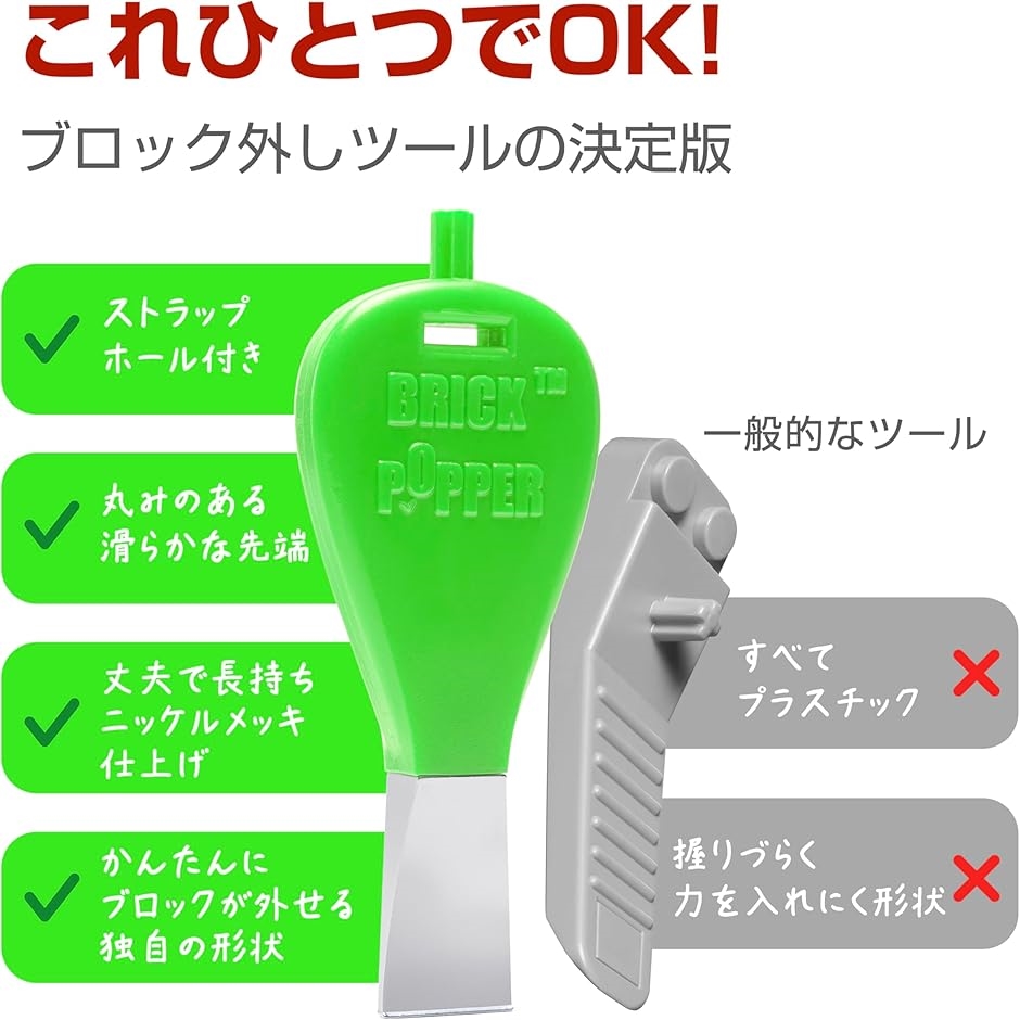 ブリックポッパー かんたんブロックはずし専用ツール 金属製で長持ち 子供・大人兼用 6歳以上(ライムグリーン)