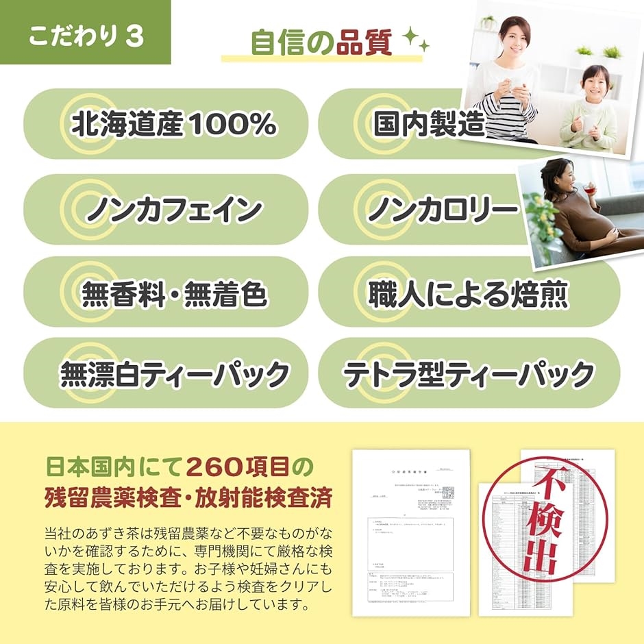 「ノンカフェイン」ご年配の方からお子様、妊婦さんや授乳中の方まで。ノンカフェインのため、皆様に安心してお楽しみいただけます。