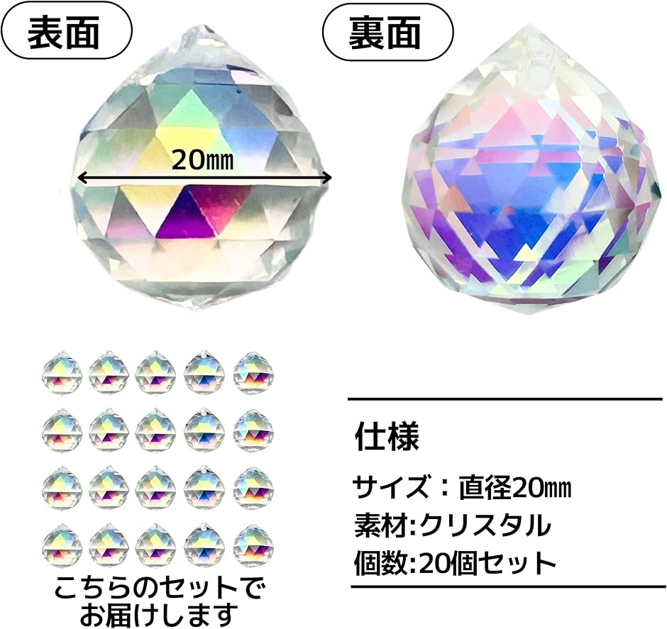 サンキャッチャーパーツ クリスタルパーツ しずく型 プリズム カラフル 穴付(オーロラ1色 20個, 20mm)