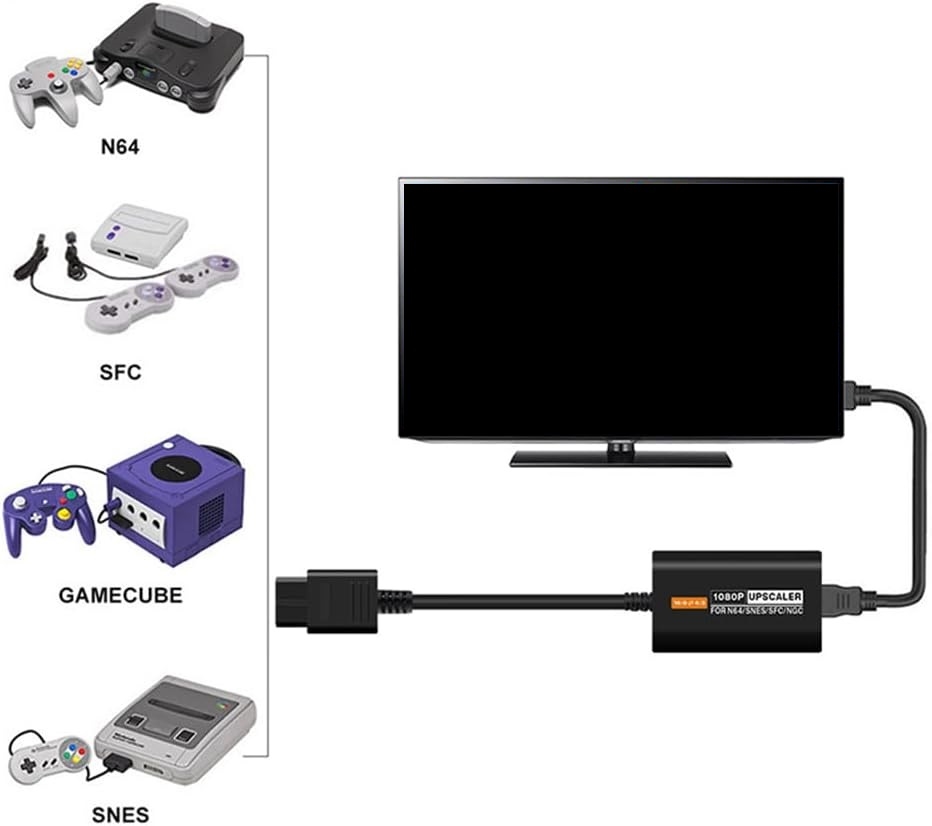 (N64/ ゲームキューブ/SNESからHDMIへの変換のみをサポートし、逆方向にはご使用できません。