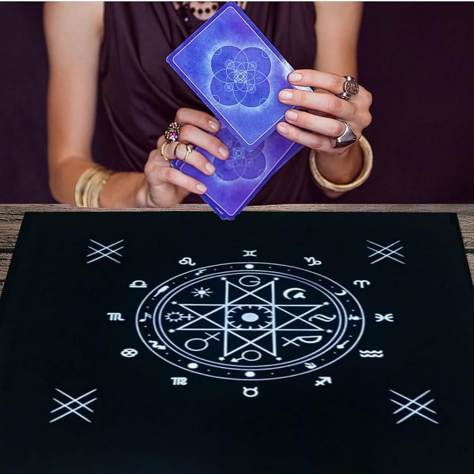 タロットクロス ベルベット ポーチ タロットカード用クロス 占いクロス 黒 星座(黒(星座))