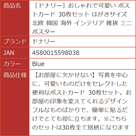 おしゃれで可愛い ポストカード 30枚セット はがきサイズ 北欧 韓国 海外 インテリア 雑貨 ミニポスター (Blue)