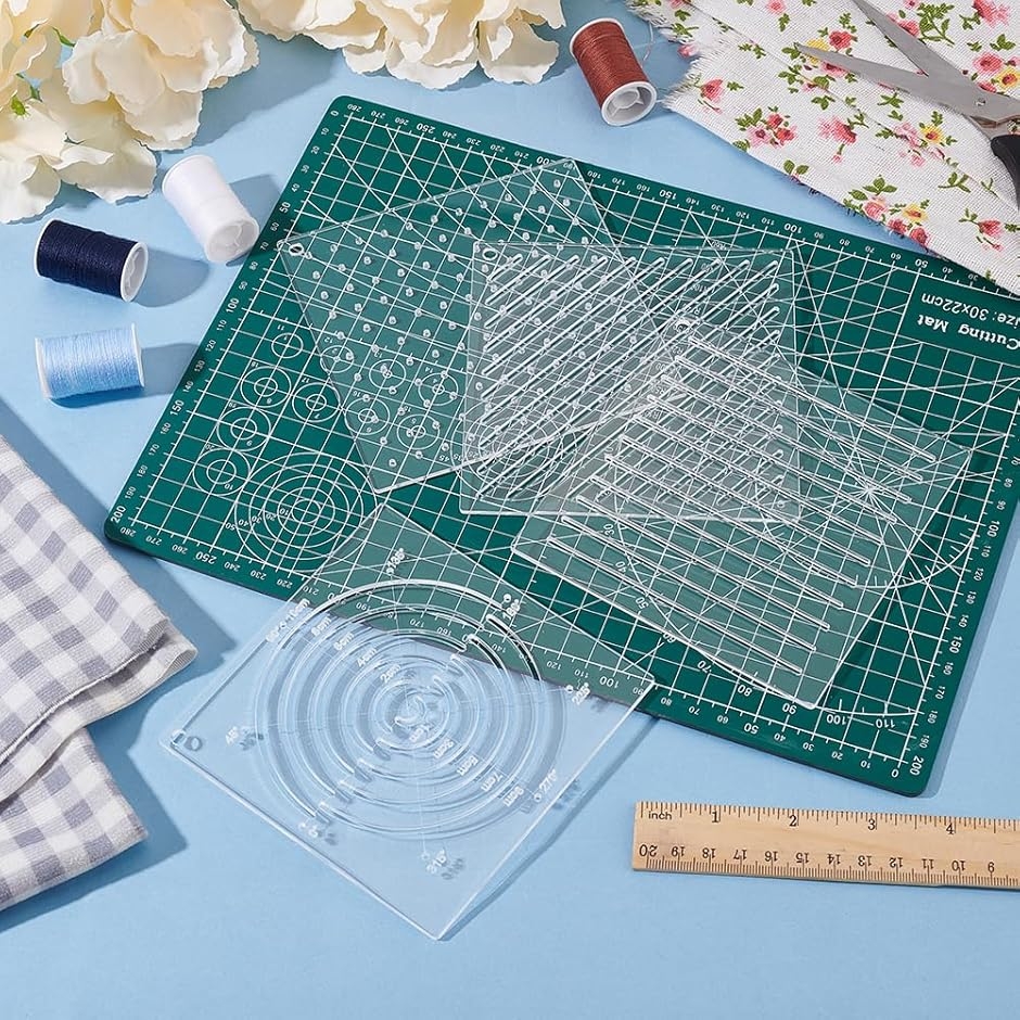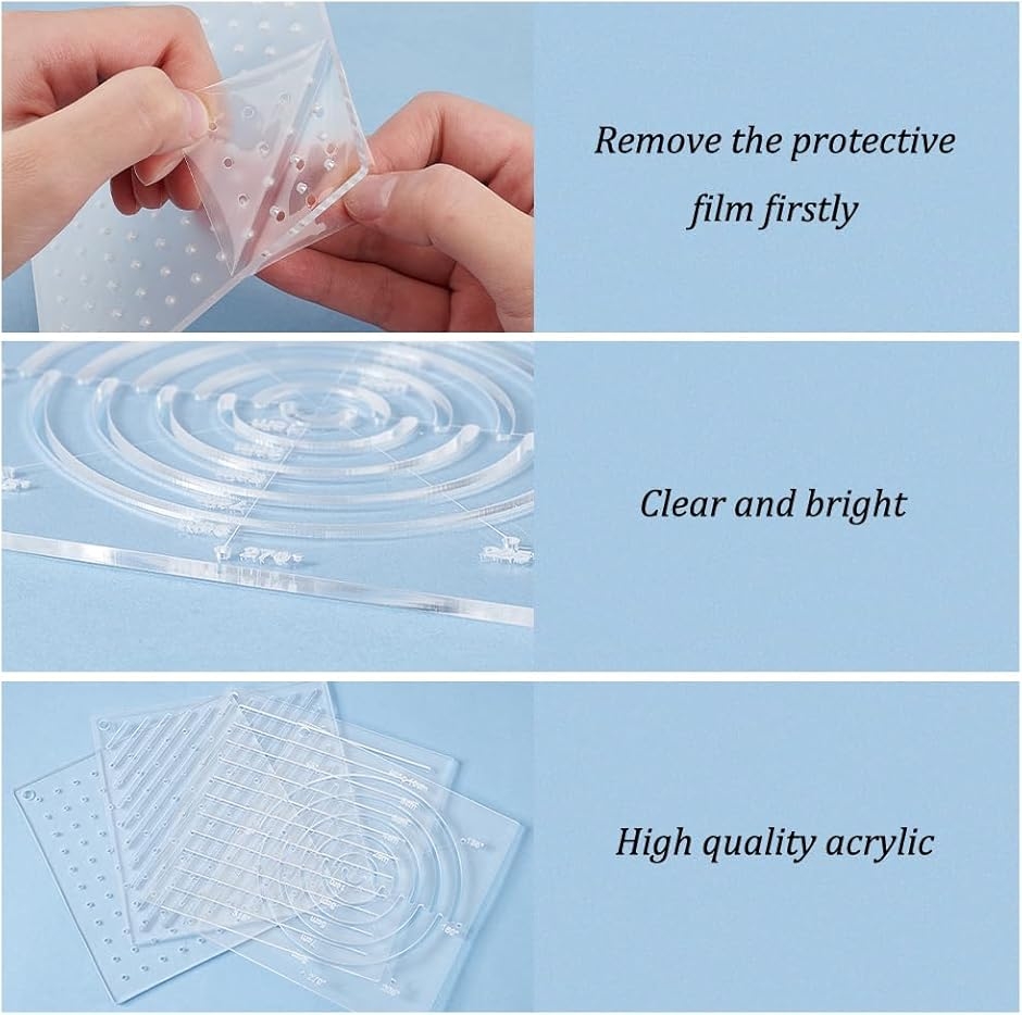 パッケージ内容: 縫製ニーズに合わせて、点、線、円弧、スラッシュパターンのアクリルテンプレートを4枚含まれます。