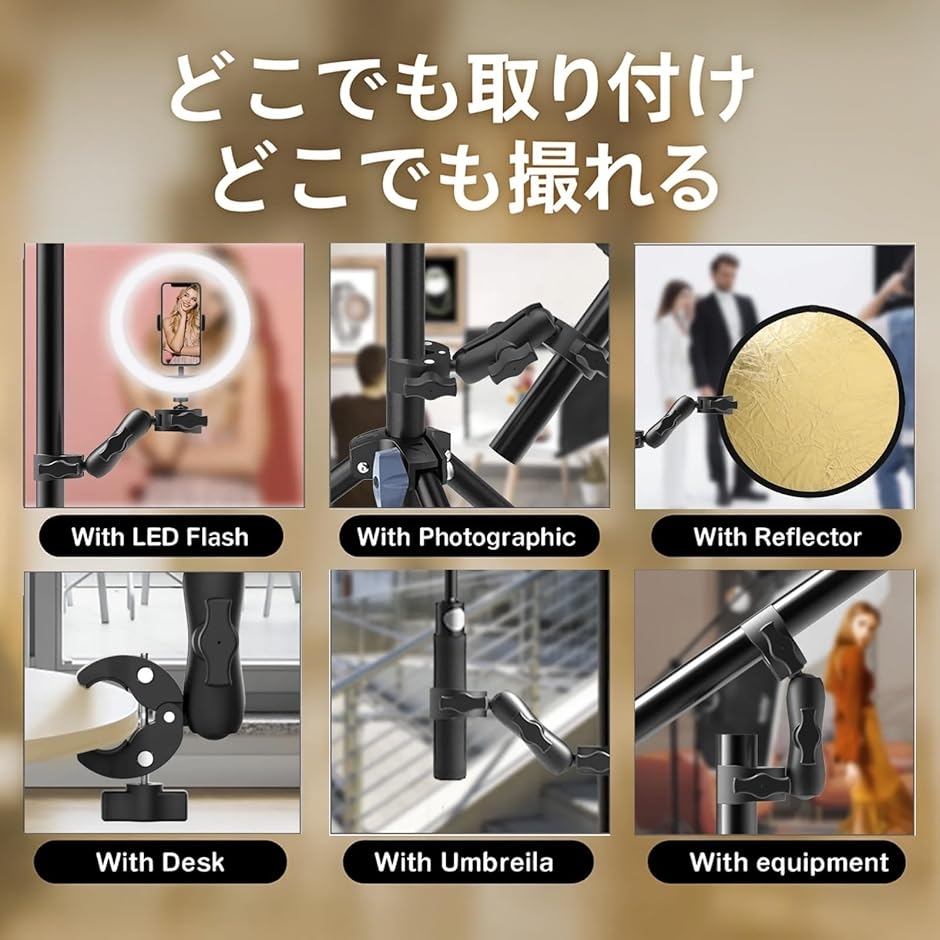 アクションカメラ、コンパクトカメラ、スマホホルダーの取り付けが可能な用途の幅が広いオールインワンで、撮影・Vlog・ライブ配信・DIY作業ライト取付・デスク撮影など多様シーンでお使いいただくことができます。
